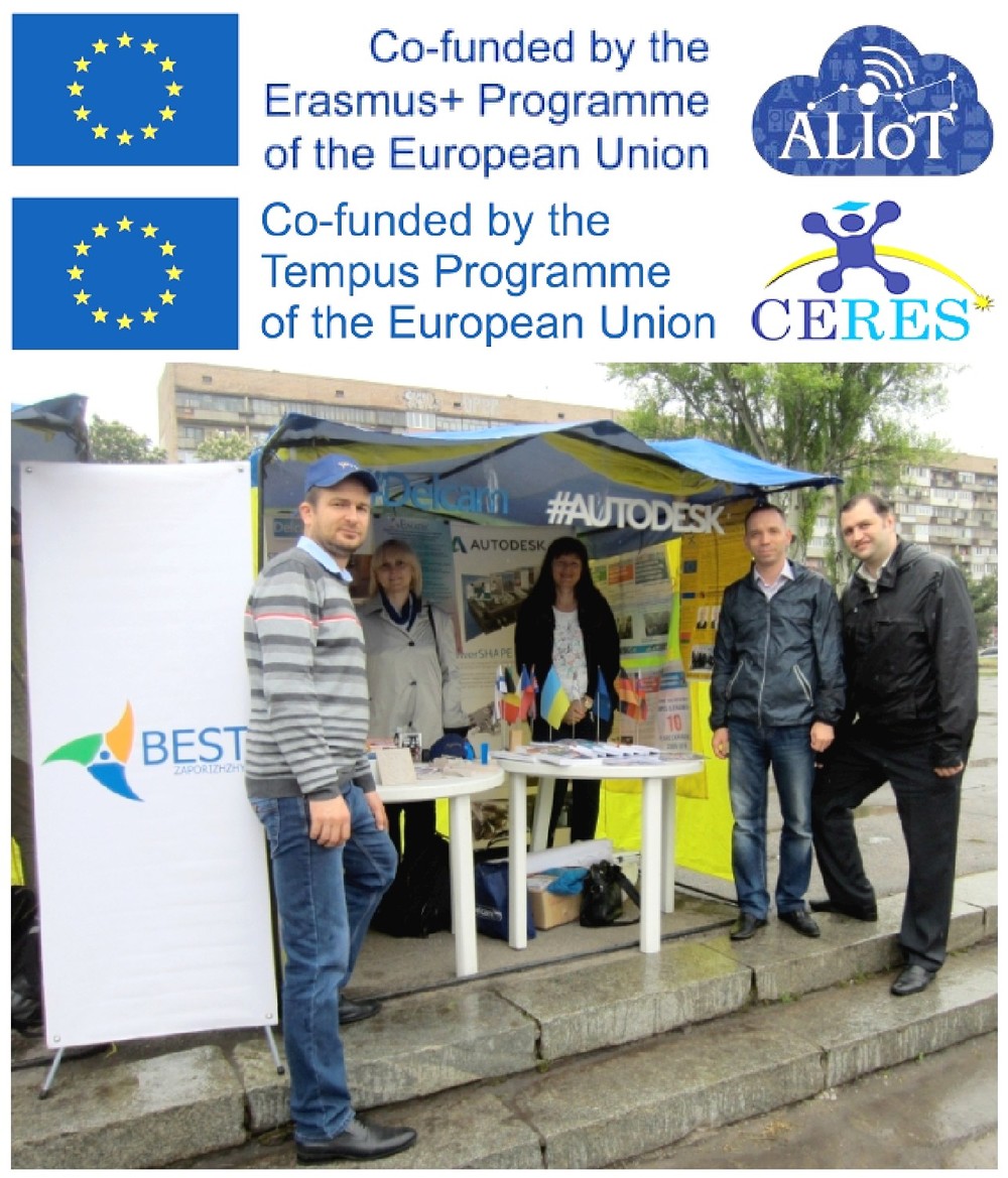 14 травня 2017 р. співробітники ЗНТУ, що представляють проекти “Internet of Things: Emerging Curriculum for Industry and Human Applications” (ALIOT, Ref. number 573818-EPP-1-2016-1-UK-EPPKA2-CBHE-JP) програми Erasmus+ та “Centers of Excellence for young RESearchers” (CERES, Ref. number 544137-TEMPUS-1-2013-1-SK-TEMPUS-JPHES) програми Tempus Європейського Союзу, спільно зі студентською організацією Board of European Students of Technology (BEST) брали участь у проведенні “Дня Європи в Запоріжжі” на пл. Фестивальній.